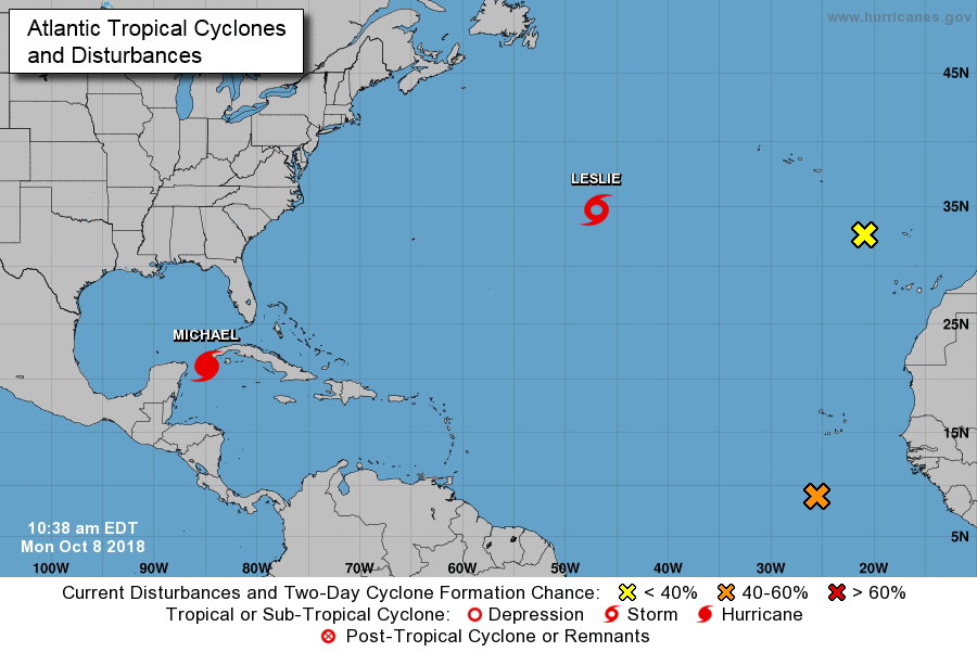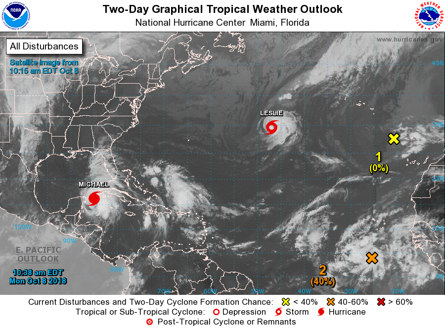 Ik had begrepen dat NHC de ontwikkeling laag hield vanwege de nog aanwezige shear in de bovenlucht ten westen van de kern. Dit zou snelle ontwikkeling moeten hebben tegen gaan. Maar dat is dus toch gebeurd. Het zal voor NHC in ieder geval mooi studie materiaal opleveren naderhand. Zowiezo is de gehele Atlantische Oceaan plots "explosief" geworden. Nieuwe tropical wave wordt elke run opgeschaald (no2 rechtsonder) en opnieuw ontwikkeling tussen azoren en Canarische eilanden. Leslie draait nog maar eens een rondje.
