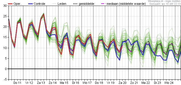 Inderdaad opvallend. Daarbij moet je bedenken dat we deze dagen zo’n 7 tot 9 graden boven normaal zitten. Zaterdag kan Tx 11 boven normaal komen. En dat is heel bijzonder voor deze tijd van het jaar. In feite is dat het bijzondere. Als je de warme dagen t/m zondag buiten beschouwing laat blijft er slechts een kleine daling over.