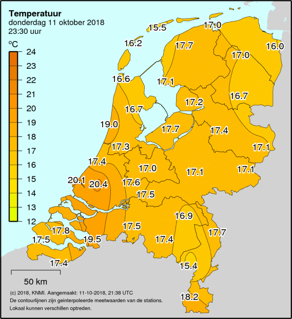 Actueel nog 20°C in het zuidwesten