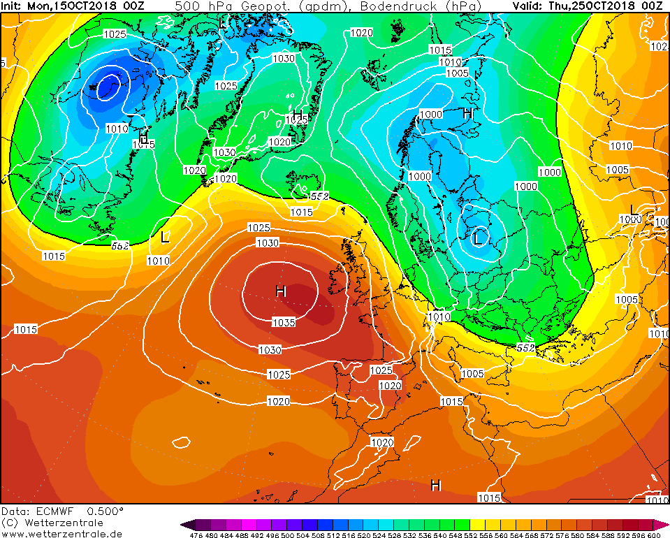 Zoals ik gister al benoemde komt de weg vrij voor een NW-stroming. Een dergelijke kaart levert hier de eerste (serieuze) vorst op en in de Alpen verse sneeuw.