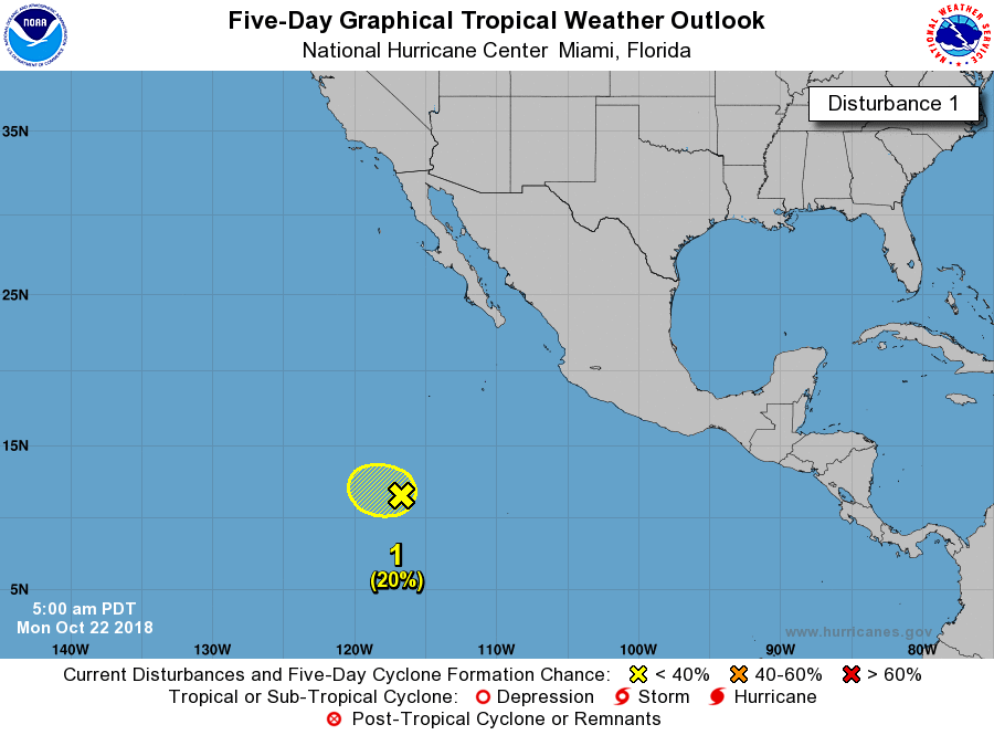 Verder is er nog een disturbance in de oceaan ten Westen van de huidige stormen met een 20% kans van vorming over de komende 5 dagen. GFS laat geen stormvorming zien uit deze disturbance. Op de LT ontstaan er nog 1 à 2 kleine stormen in de huidige GFS run, maar dat is ver buiten de betrouwbare termijn.