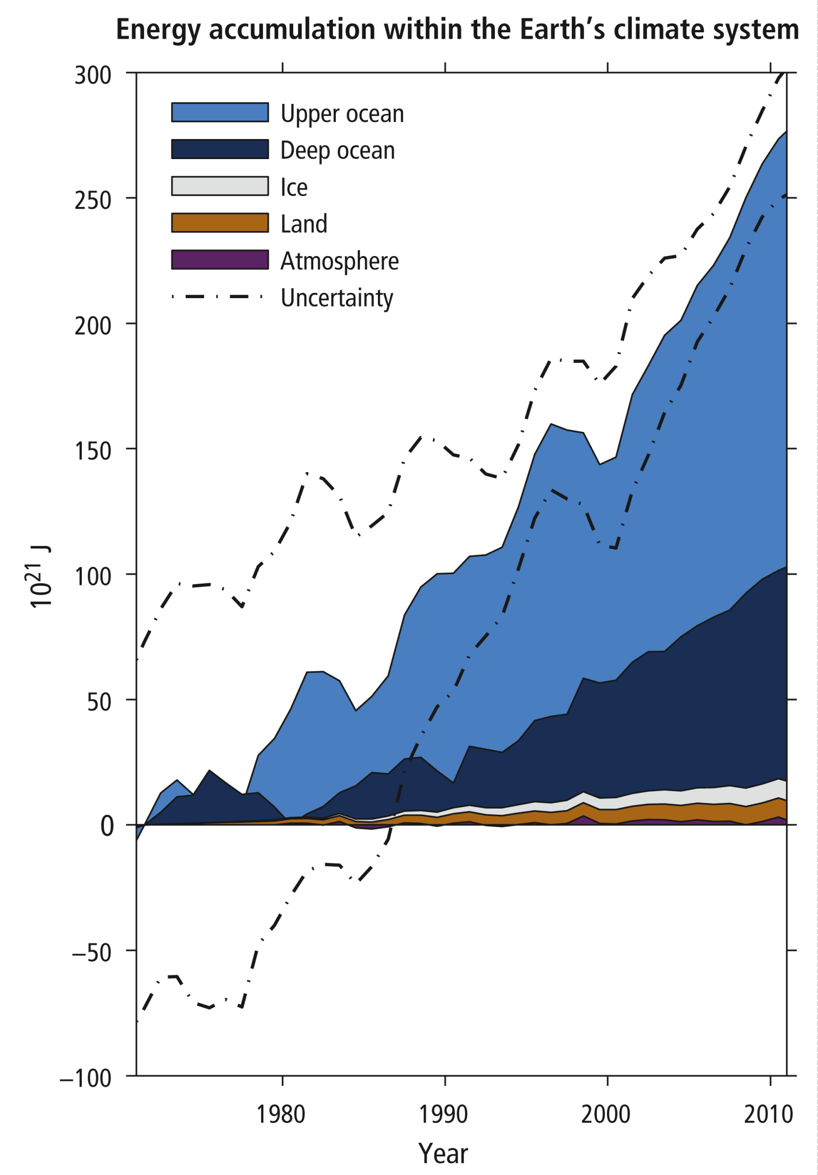 Ook al eens eerder geplaatst maar daarom niet minder verhelderend. Bron: Vijfde IPCC-rapport, box 3.1 (pagina 264).