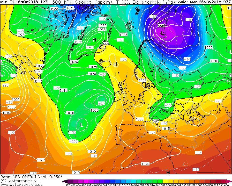 Mede door de verzwakking van het hoog. Ik zie wel nieuwe impulsen opkomen maar die lijken mij te westelijk te liggen (nabij Newfoundland). Bij ons aan de grond wel nog koud. Brongebieden stromen ondertussen ook stilletjesaan vol met koude lucht.