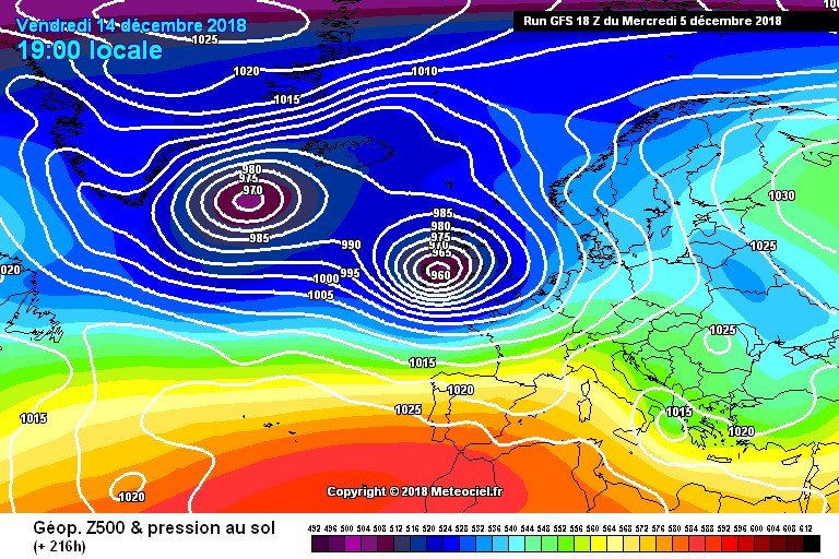 Enkele data zichtbaar op meteociel, waaronder GFS18Z 216 uur. En die is niet best.
