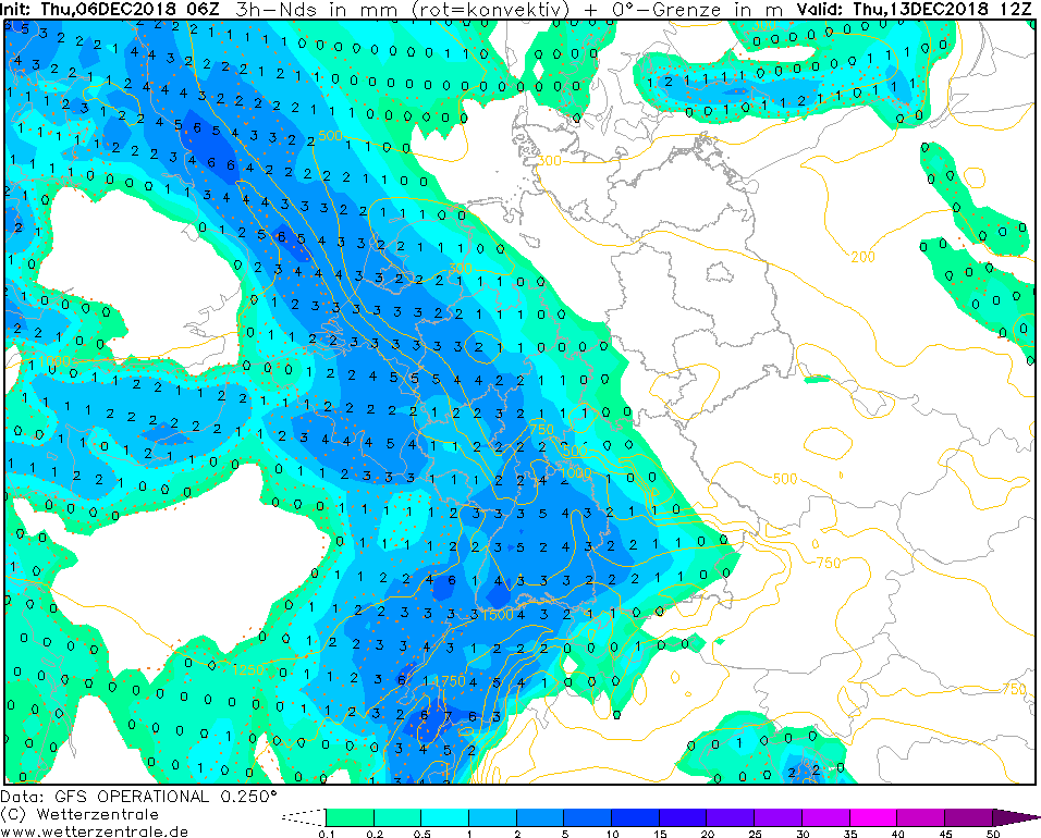 Fors gebied met neerslag trekt over de Lage Landen. Duidelijk dat de 'koude' lucht dan verdreven wordt.