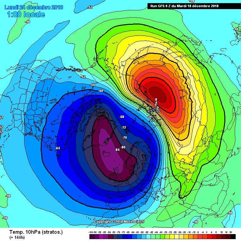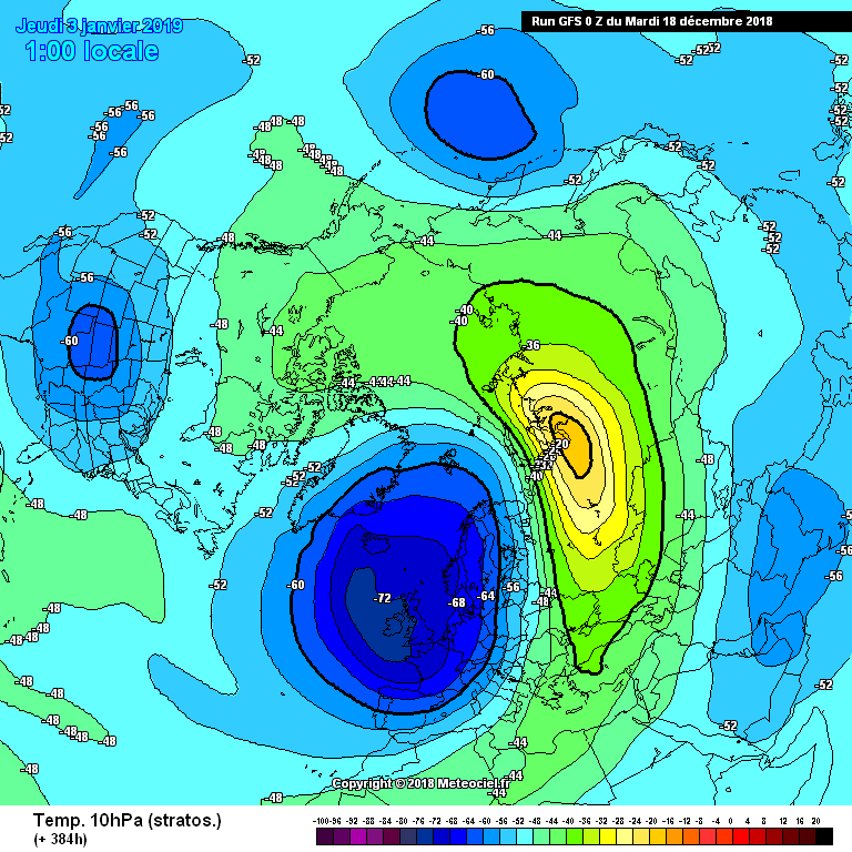 Overigens: wat nu voor het eerst voorbij komt bij de GFS00z oper op +384 uur (let op: de eerste SSW stond al vanaf +384 op de kaarten!) is een tweede warming die lijkt(!) te gaan starten.