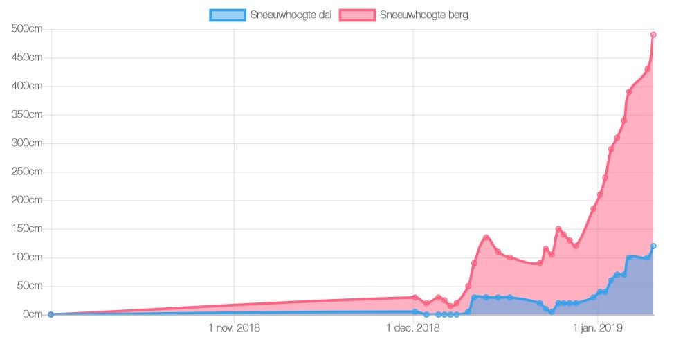 sinds de dump voor de jaarwisseling. Ik had gelezen dat de dump eerder deze week lokaal zo'n 2,5 meter opleverde in gunstige stau-gebieden. Daar is de rest van de week + vandaag nog lokaal 1,5 meter bij gekomen. Deze zondag gaat het weer sneeuwen en kan er lokaal weer dik 1 meter vallen. Tel daar de sneeuwval van vorige week bij op en je komt wel op een historische hoeveelheid in 2 weken tijd. Natuurlijk klinkt het een en ander in en waait het hard waardoor alles verstuift.