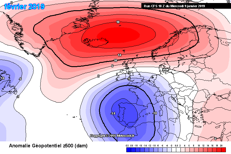De 500hpa geop. anomalie voor februari 2019 is in CFS in ieder geval duidelijk: