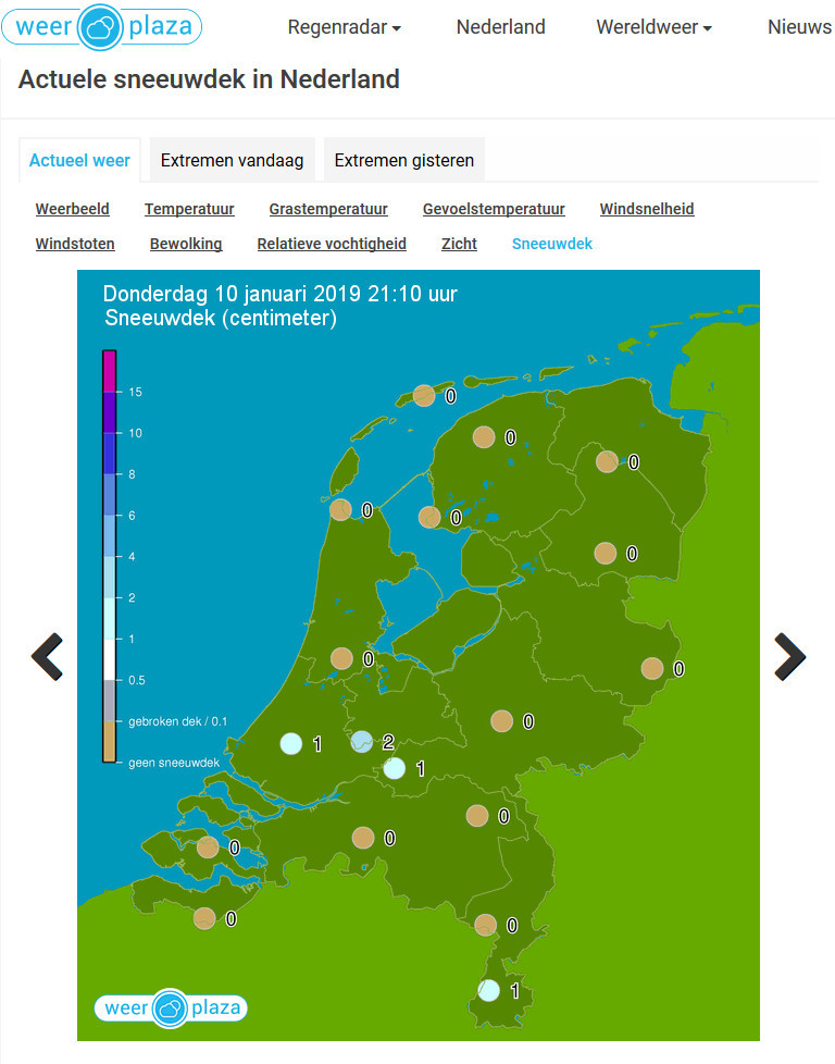 Bij de extremen van vandaag en gisteren is idd geen kaart, ook niet één zonder gegevens te zien.