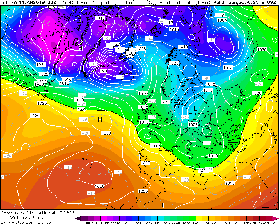 Koudere lucht dichtbij, drukopbouw (tijdelijk?) boven Scandinavie