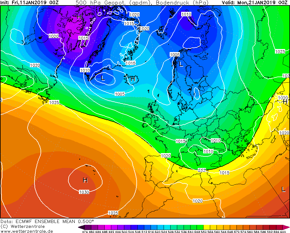 Ipv paars. Wijst op meer leden met hoge druk in die omgeving. Volgens mij best bijzonder op die termijn?
