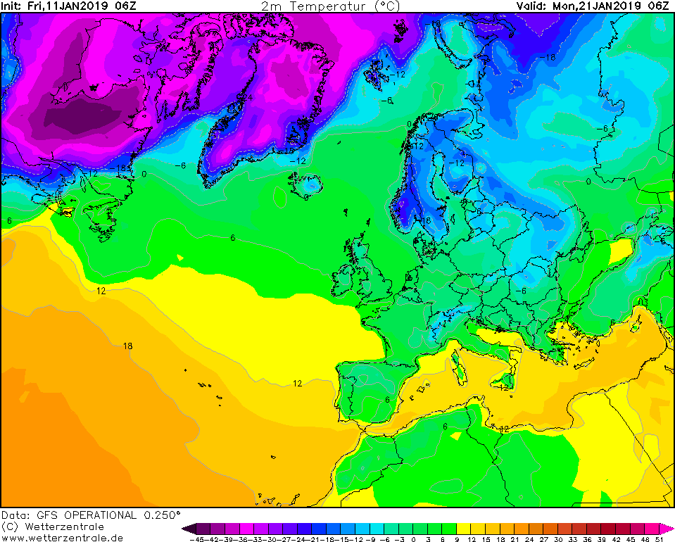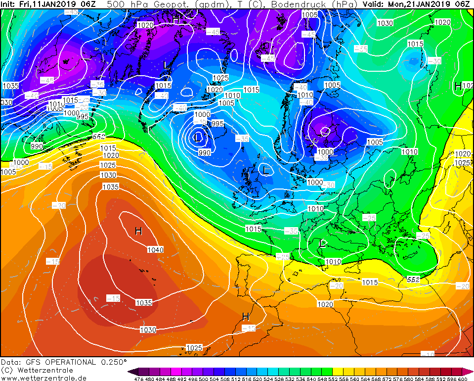 Ijsland te ontstaan. Eigenlijk zie je aan de depressie dat deze wordt tegengehouden vanaf 200 en op 240 zie je het resultaat. De luchtdruk richting Groenland stijgt ook, waardoor we alsnog in de koude lucht kunnen komen. Echter ten opzichte van eerdere runs is dit wel uitstel. Positieve vind ik dat het links of rechtsom toch kouder lijkt te worden met toenemende sneeuwkansen. De hogedruk ten noorden van ons komt consistent terug. Edit: al lijkt het wel nachtwerk te worden als je sneeuw wilt zien, want op 2m stelt dit nog weinig voor. Maar kijken hoe deze oper zich in het ensemble bevindt