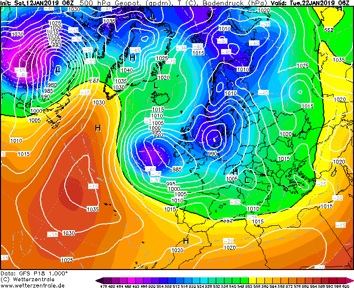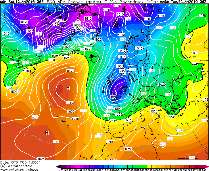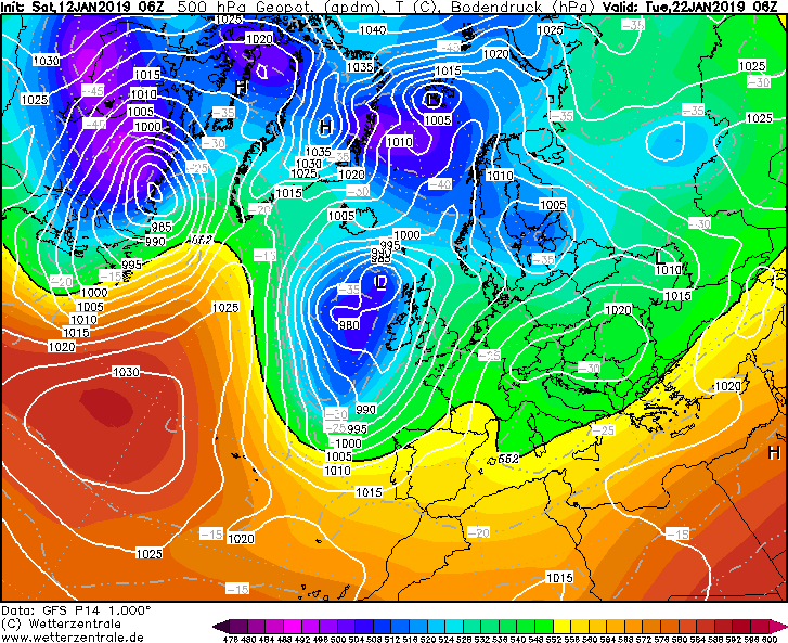 Geen Siberische toestanden -dat zat ook niet in de planning- wel in veel leden een Rug in het westen van de Atl. Oceaan. Positie en vorm verschilt natuurlijk.