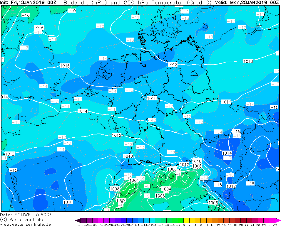 -14°C gewoon tot stilstand gekomen boven Nederland met amper een zuchtje wind. Voor schaatsers staat dit gelijk aan een dikke zwarte ijsvloer...