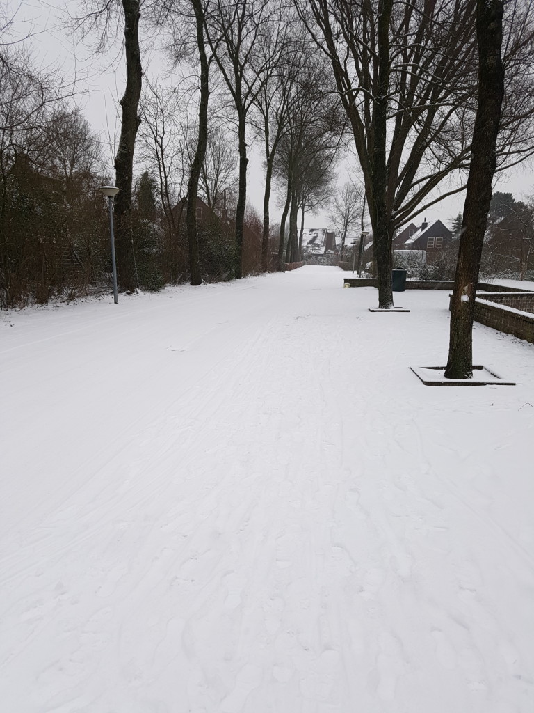 Sneeuw, -1.1 graden. Sneeuwhoogte 2 cm