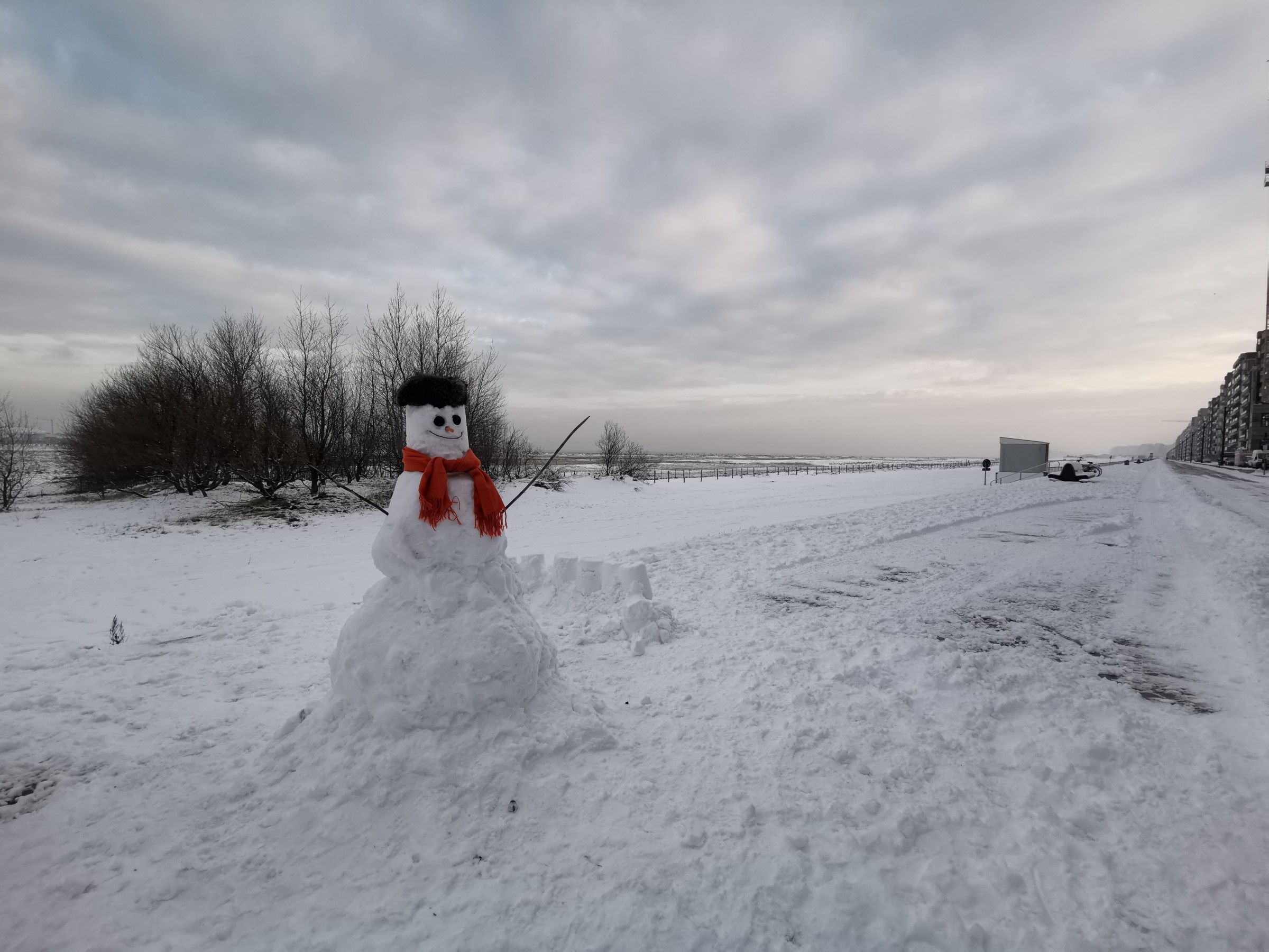 Tact +1.7°, sneeuwman zeedijk Heist houdt zich kranig!