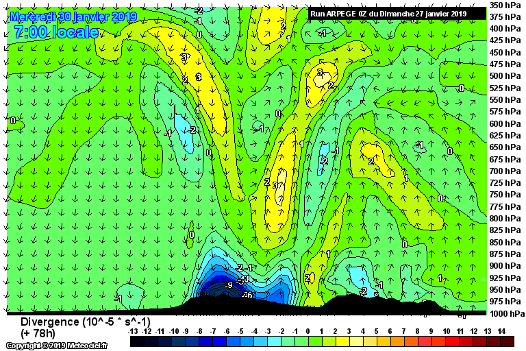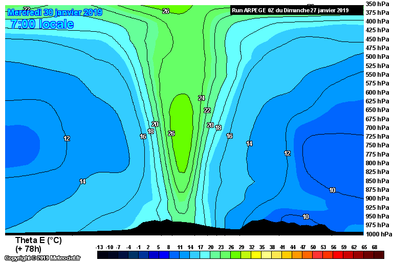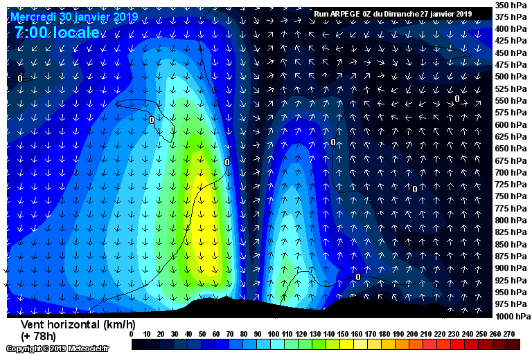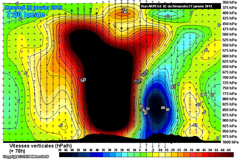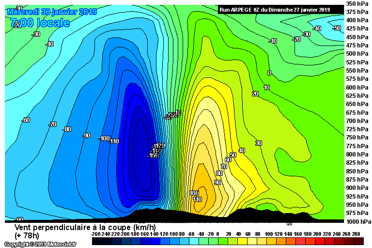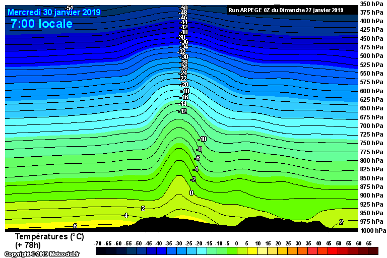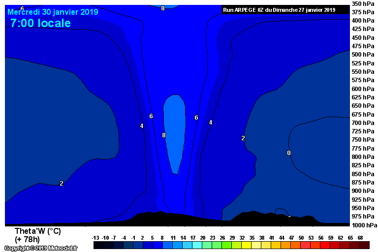 Zowat al die kleine laagjes in de koude bovenluchten hebben een warme kern, natuurlijk zit er veel spreiding op de intensiteit maar sommige ervan voldoen zeker aan de criteria van een polar low. Vooral Arpège is bijzonder (te?) agressief en kwam in de 00z run met een ~960hPa systeem bij Schotland. Ik heb daarvan ook even een (W-O) verticale doorsnede genomen, waarop duidelijk de warme kern en een >150km/u wind maximum te zien is. Ik geef toe dat dit onwaarschijnlijk is en overdreven lijkt, maar de systemen die in meer of mindere mate in zowat alle modellen terugkomen hebben de potentie om uit te groeien tot polar lows. De omstandigheden zijn ernaar en het zijn symmetrische, compacte en convectief gedreven cyclonen met een warme kern;