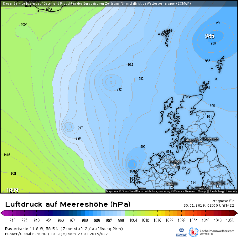 Volgens mij is de tekst genuanceerd genoeg, verder tonen meerdere modellen daadwerkelijk die polar lows dus we hebben het niet zomaar over enkel potentieel. Houd daarbij ook rekening dat de kaarten van Meteociel de uitvoer niet op de volledige resolutie tonen, waardoor zeker dit soort kleine felle systemen te zwak worden weergegeven. Bijgevoegd een voorbeeldje van de EC uitvoer op Kachelmann, daar kan je deze wel op volledige resolutie bekijken maar de kaarten zijn wat minder deel-vriendelijk en overzichtelijk dan op Meteociel vind ik;