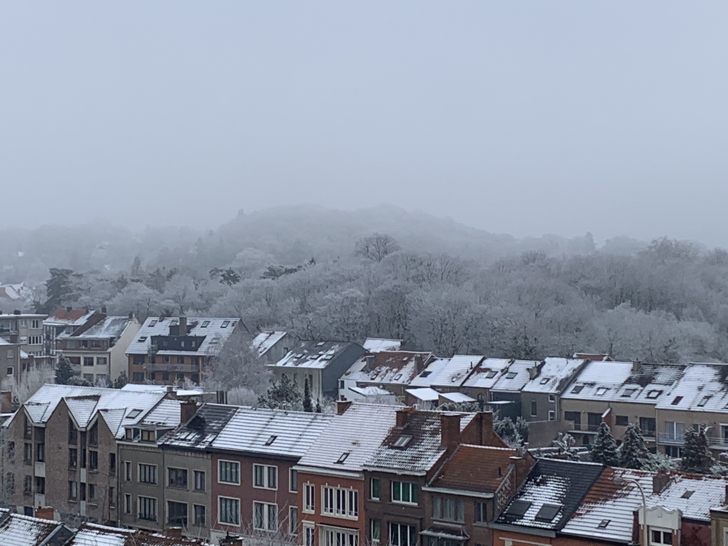 Leuven ook bewolkt en prachtige rijp op de bomen.