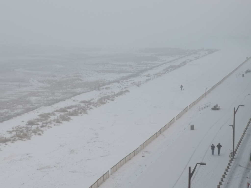 Tact -1.9°, Tmin -3.9° en diepwinters op de dijk en op het strand!