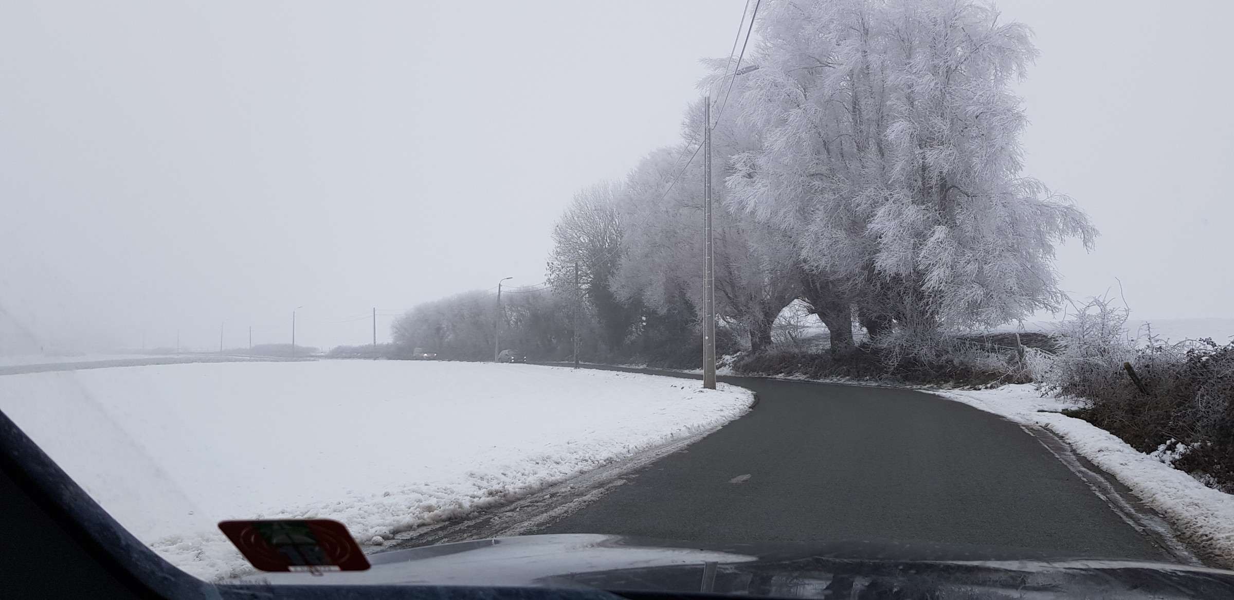 Kalmthout nevelig, -1,2°C en vers laagje sneeuw (1-2 cm)