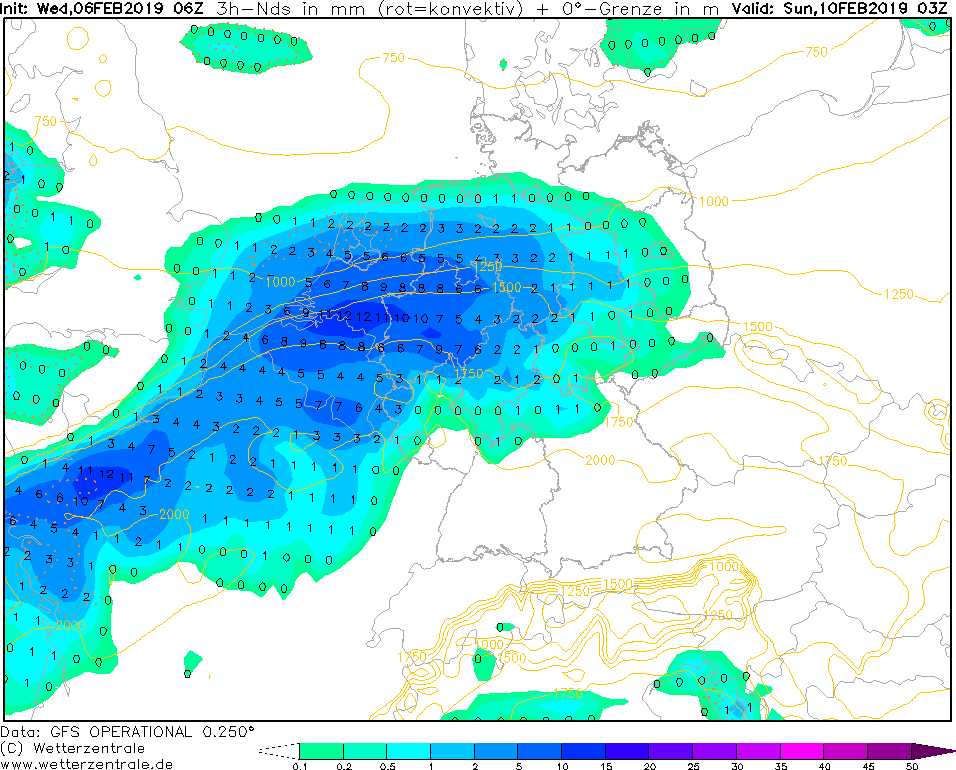 ECMWF geeft een vrij droge storm, dat is het ook niet.