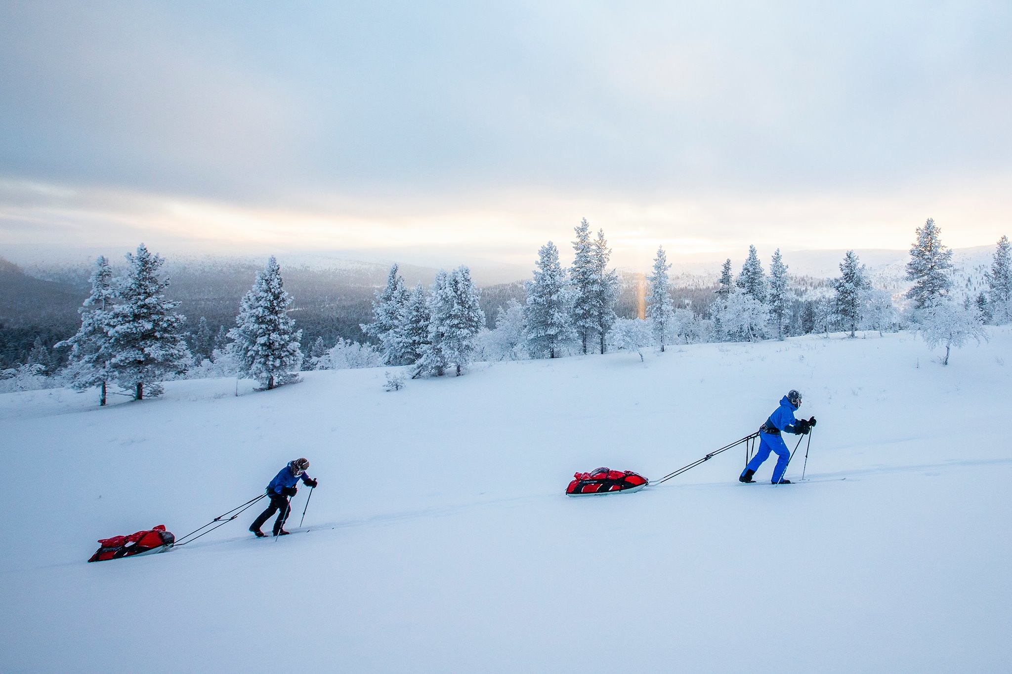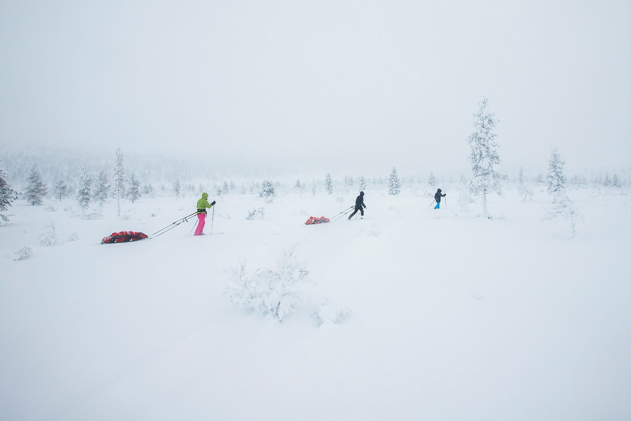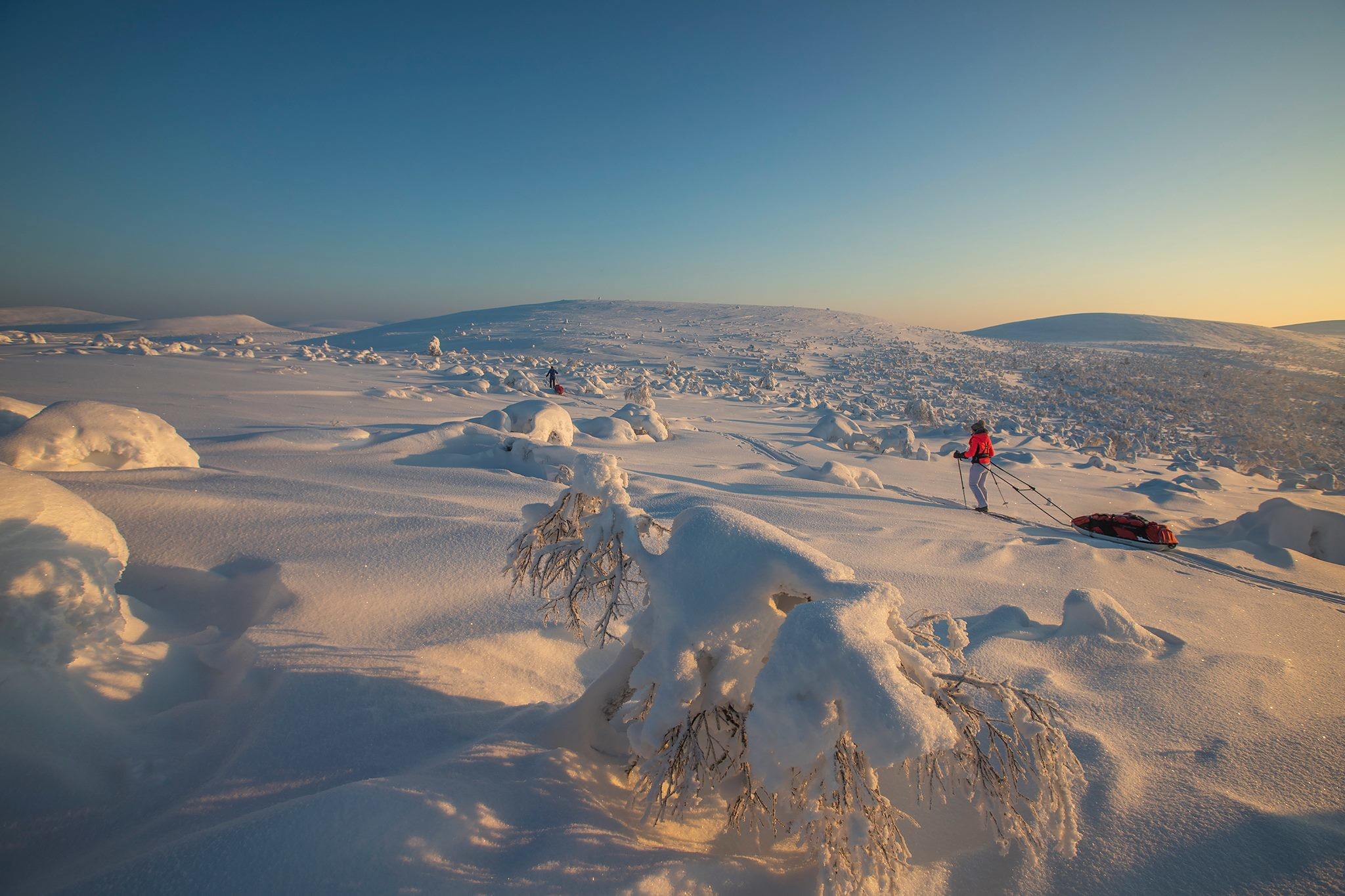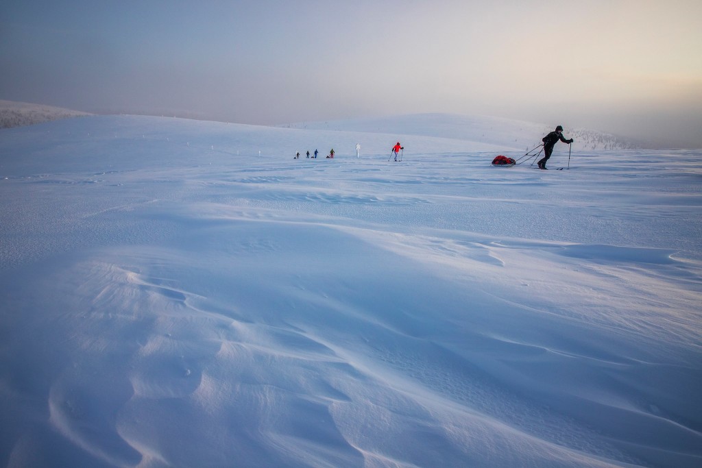 Net terug uit Urho Kekkonen Nationaal Park in Fins Lapland, waar ik als expeditiegids bijna drie weken lang met twee groepen trektochten door de wildernis heb gemaakt. Onze bagage trokken we daarbij voort in slede's (pulka) met overnachting in wildernishutten.
