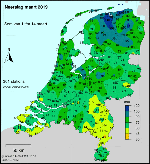 Nog niet alle stations hebben hun data doorgegeven, zoals hier ook opgemerkt werd. Op het noorden van de Veluwe een gebiedje met tegen de 100mm aan, met de neerslag van vandaag gaat het over de 100mm heen. De waarde van Ron in Apeldoorn zou dus prima kunnen kloppen.
