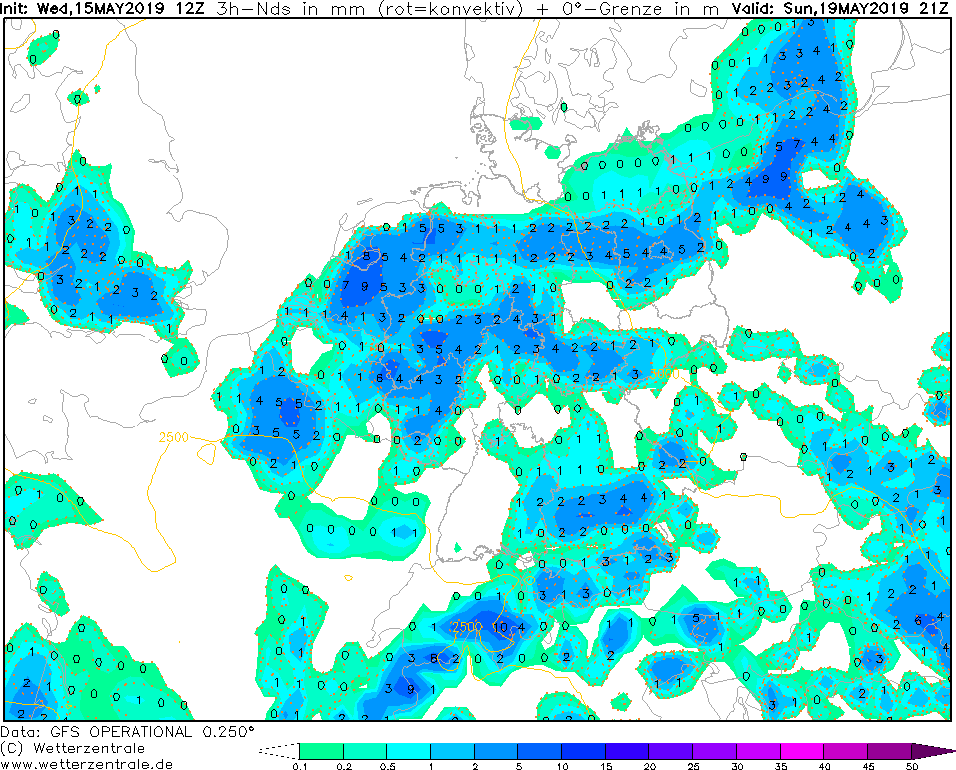 door een kleine verandering in de vorm van het laag blijft de wind iets meer aflandig en wordt het ook in Rotterdam warm (23°C). En blijft alleen een brede kuststrook droog.