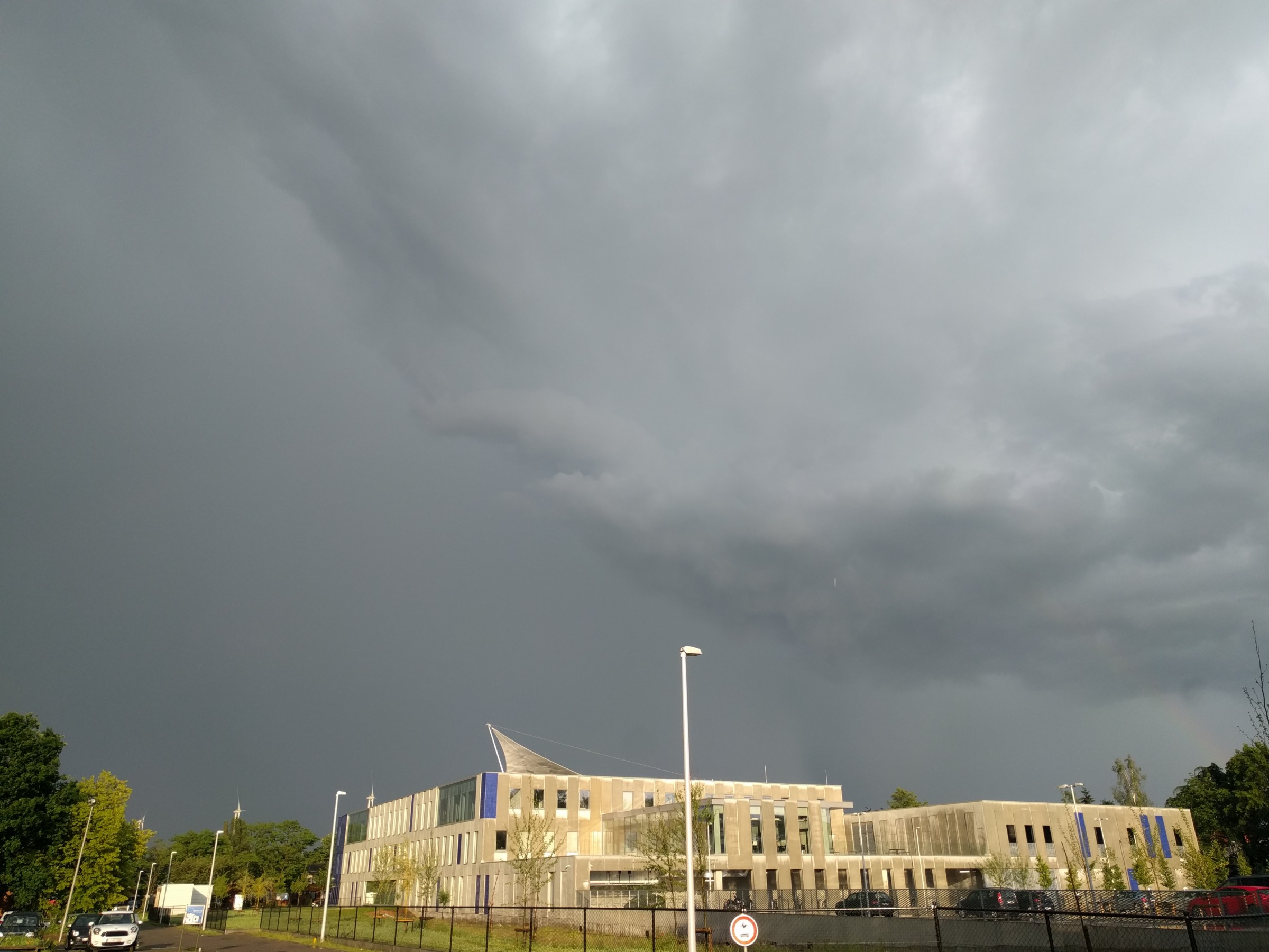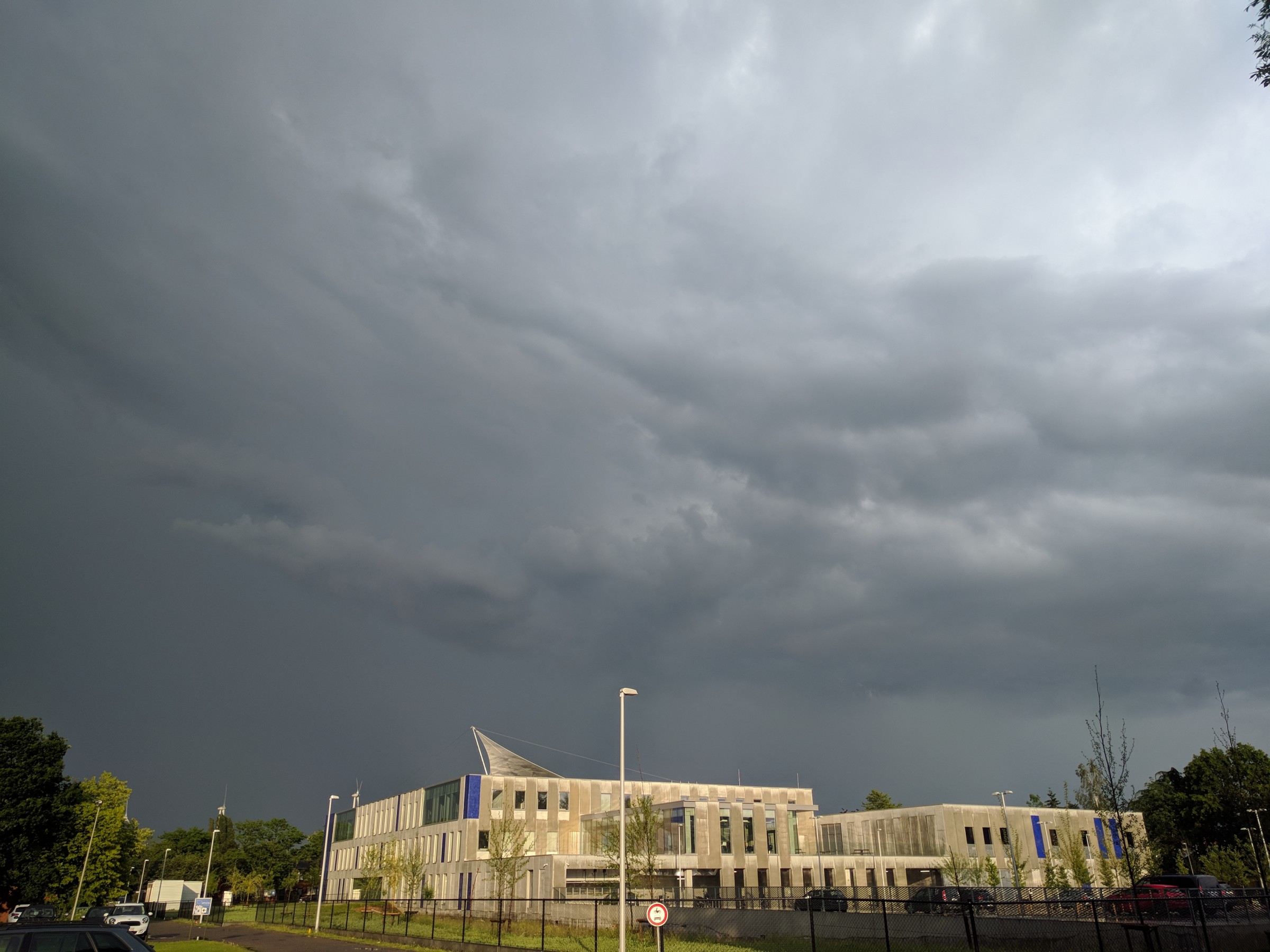Korte plensbui met wat rukwinden, geen heftige dingen. Één ietwat nabije inslag. Heb even pauze straks weer aan de slag.