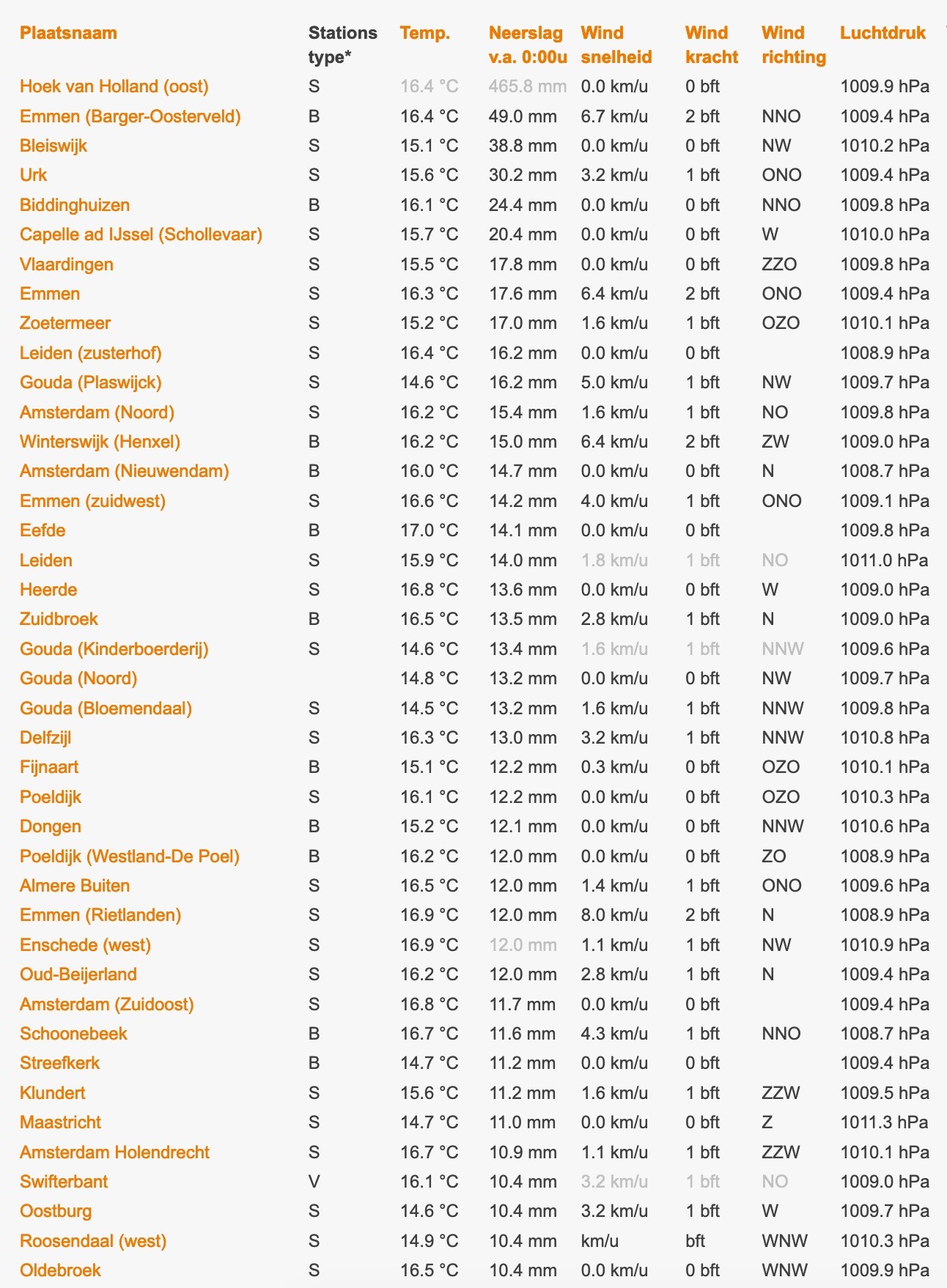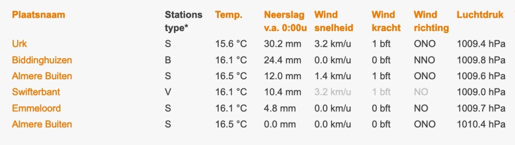 Ik ben erg benieuwd naar wat Lelystad heeft opgevangen. Bij Het Weer Actueel zie ik in ieder geval Biddinghuizen met 24,4mm en Urk met 30,2mm staan! Landelijk gezien zitten enkel Emmen (49,0mm) en Bleiswijk (38,8mm) daar nog boven.