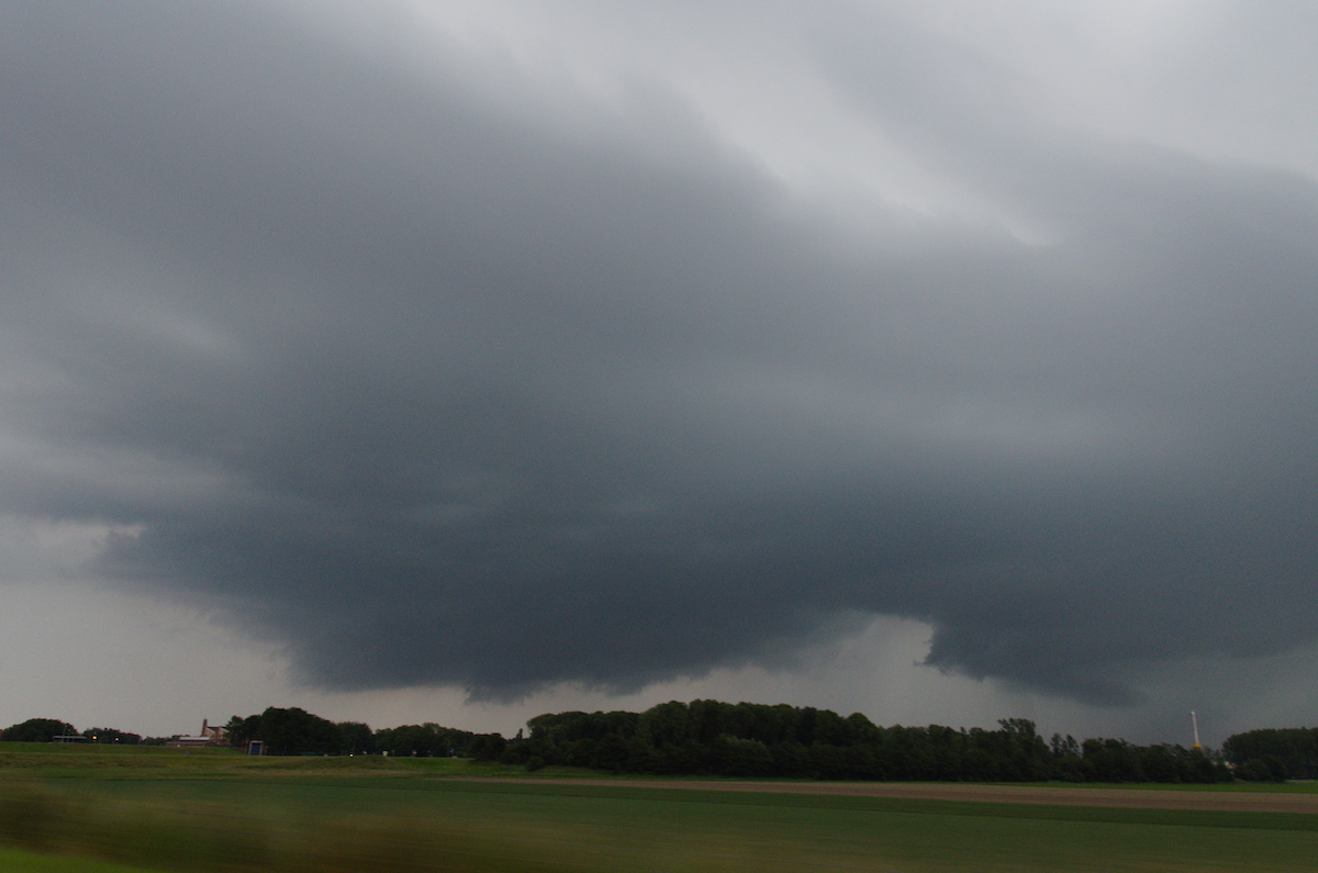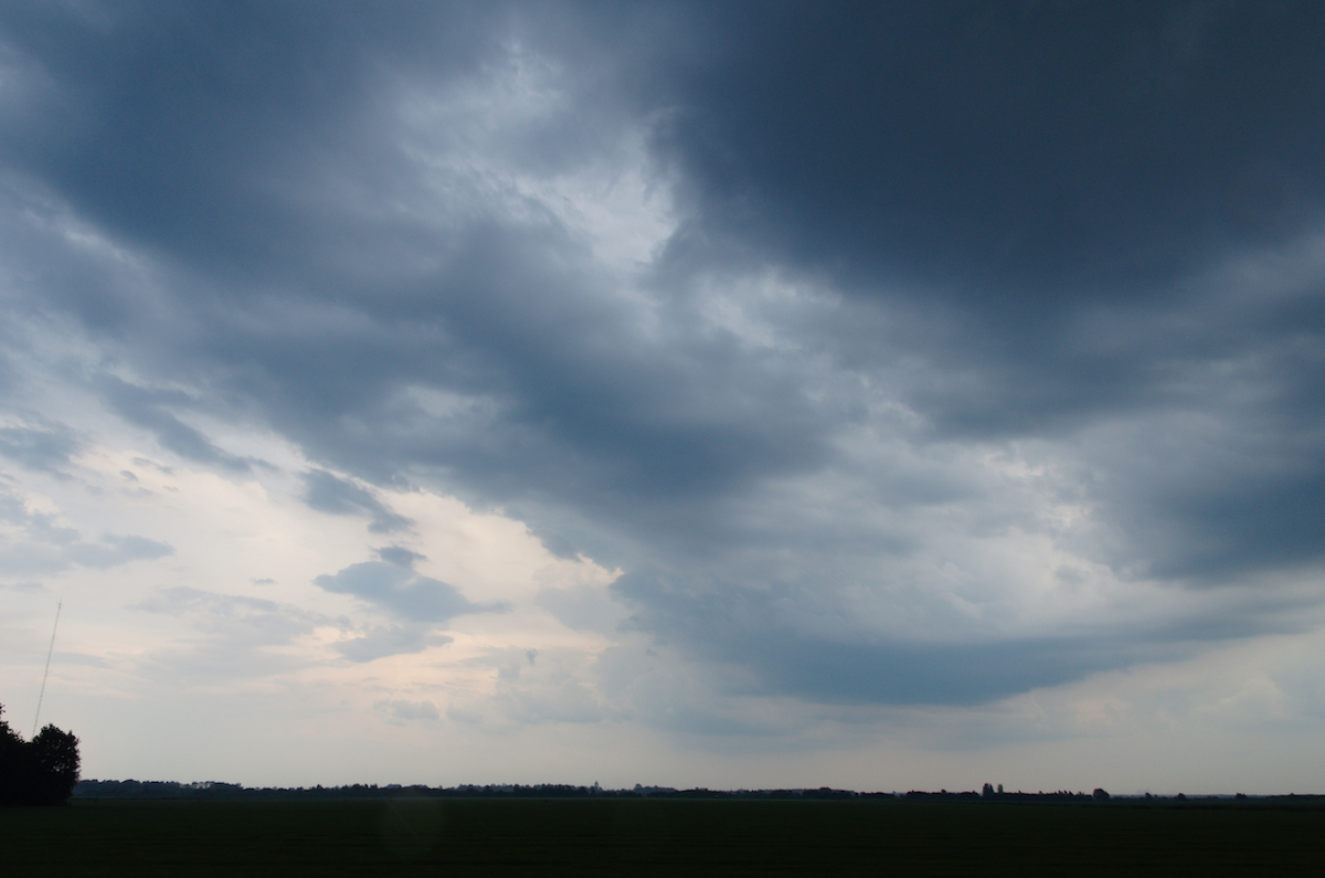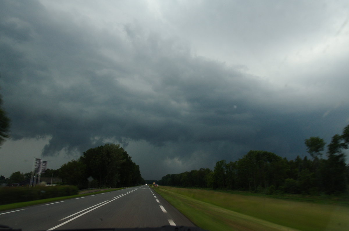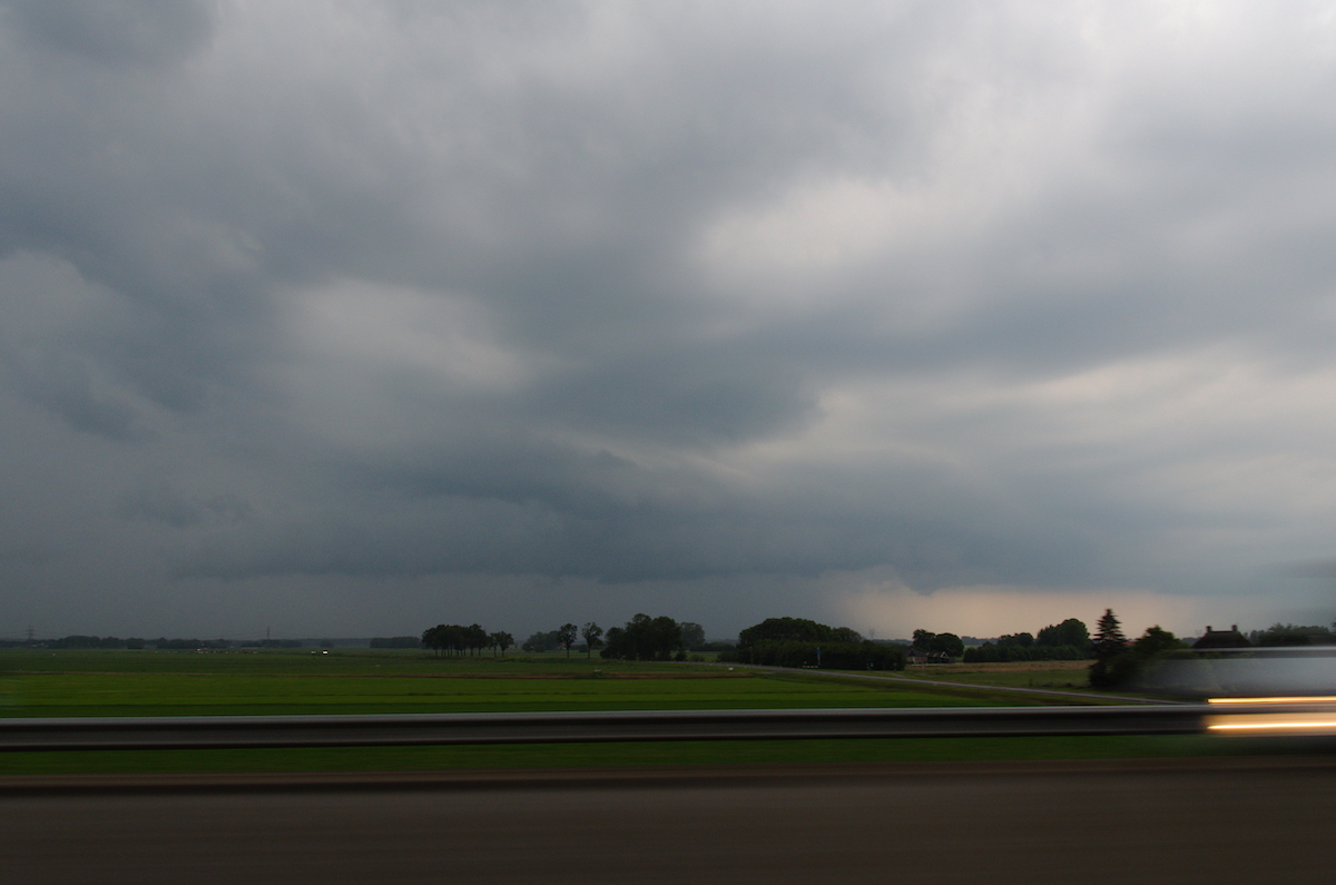 Tussen Kampen en Dronten hebben we een zichtpunt richting het zuiden gezocht. De cel was flink uitgegroeid en er leek zelfs even een funnel zichtbaar.