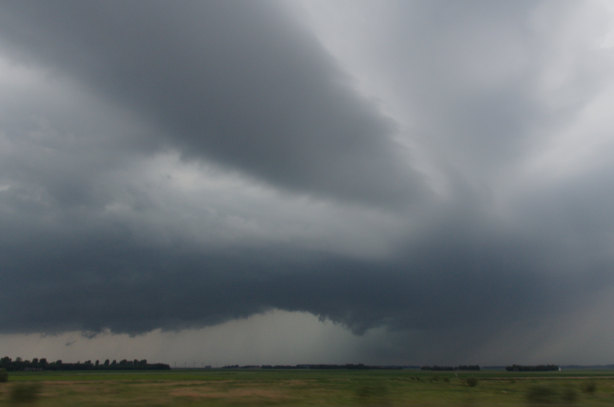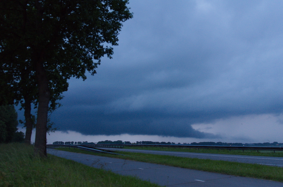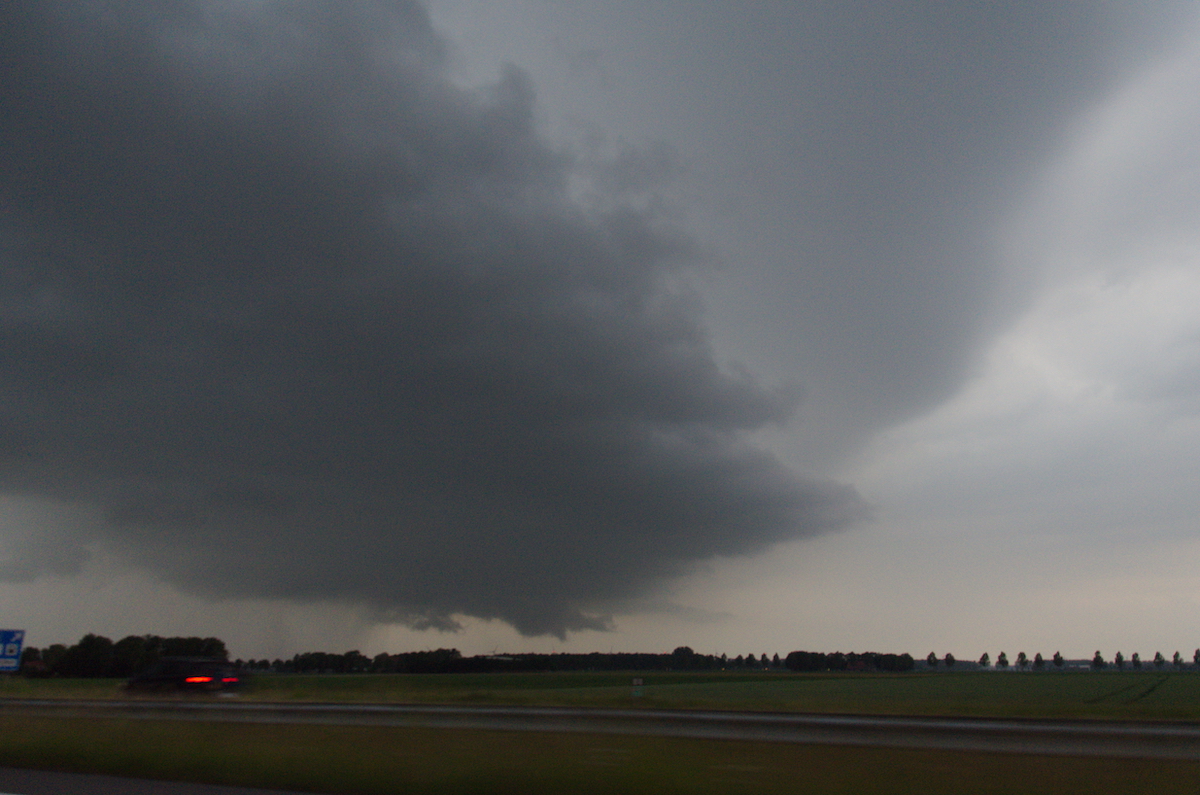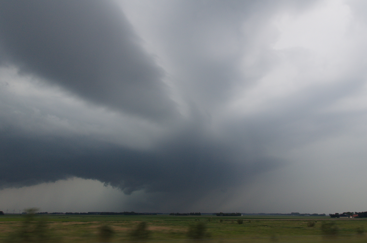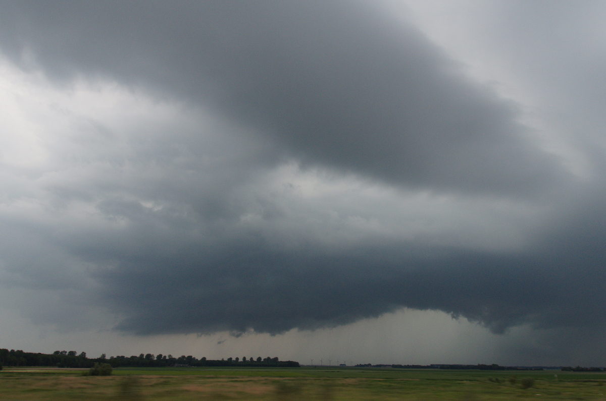 Tussen Kampen en Dronten hebben we een zichtpunt richting het zuiden gezocht. De cel was flink uitgegroeid en er leek zelfs even een funnel zichtbaar.