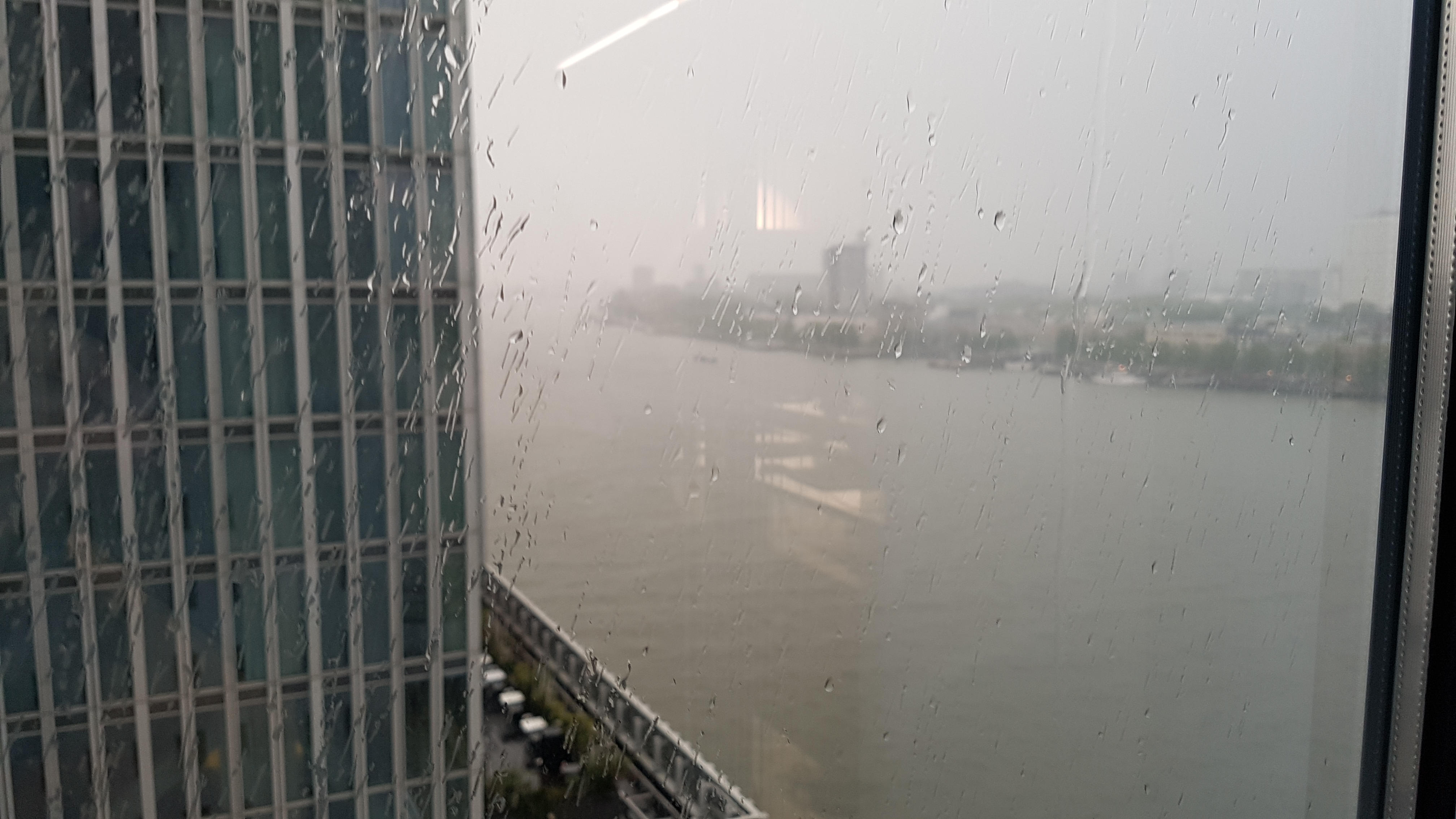 In Rotterdam-Zuid is het erg donker en regent het flink door van tijd tot tijd: