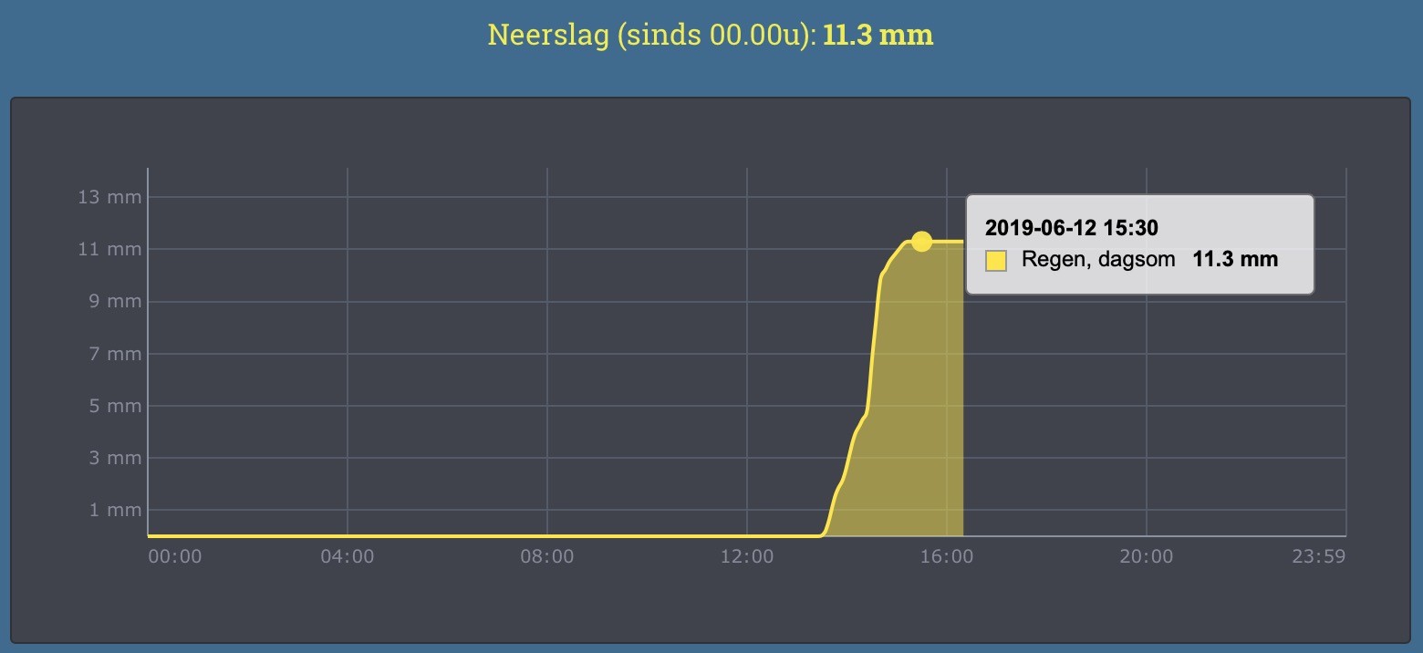 21 mm hier, en dat pas vanaf 13:40 tot ongeveer 16:00