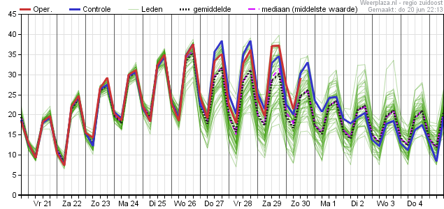 Eerste 13 dagen van augustus 2003. 25 °C etm. avg en 32 °C max avg