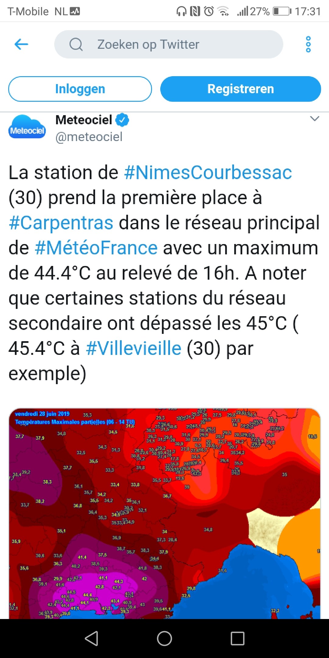 Van de hoofdstations van de Franse weerdienst is Nimes koploper. Van de secundaire stations (die ze dus vaak ook meenemen in records) staat de 45.9 overeind. Beetje verwarrend is het wel, dat Meteo France...