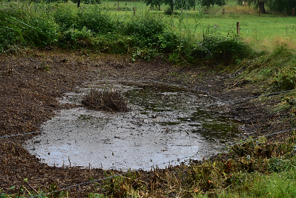 We hebben twee poelen die zijn drooggevallen. naast de poel stroomt een sloot die ook tevens als afvoer bij hoogwater van de poel dient. Nu ging het andersom