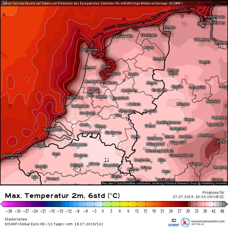 De hele volgende week 30+ met 35+ in het Zuiden en dan in het UGKB 39 graden in de Benelux volgende week zaterdag.