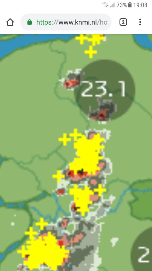 We gaan er weer tussendoor hier. Actieve bui boven Groningen, activerende bui over Drenthe. Mooie luide donderslagen maar daar blijft het dan ook bij. Wel een prachtige CB zeg. Een juweeltje. Edit: gaat achter elkaar door met gedonder.