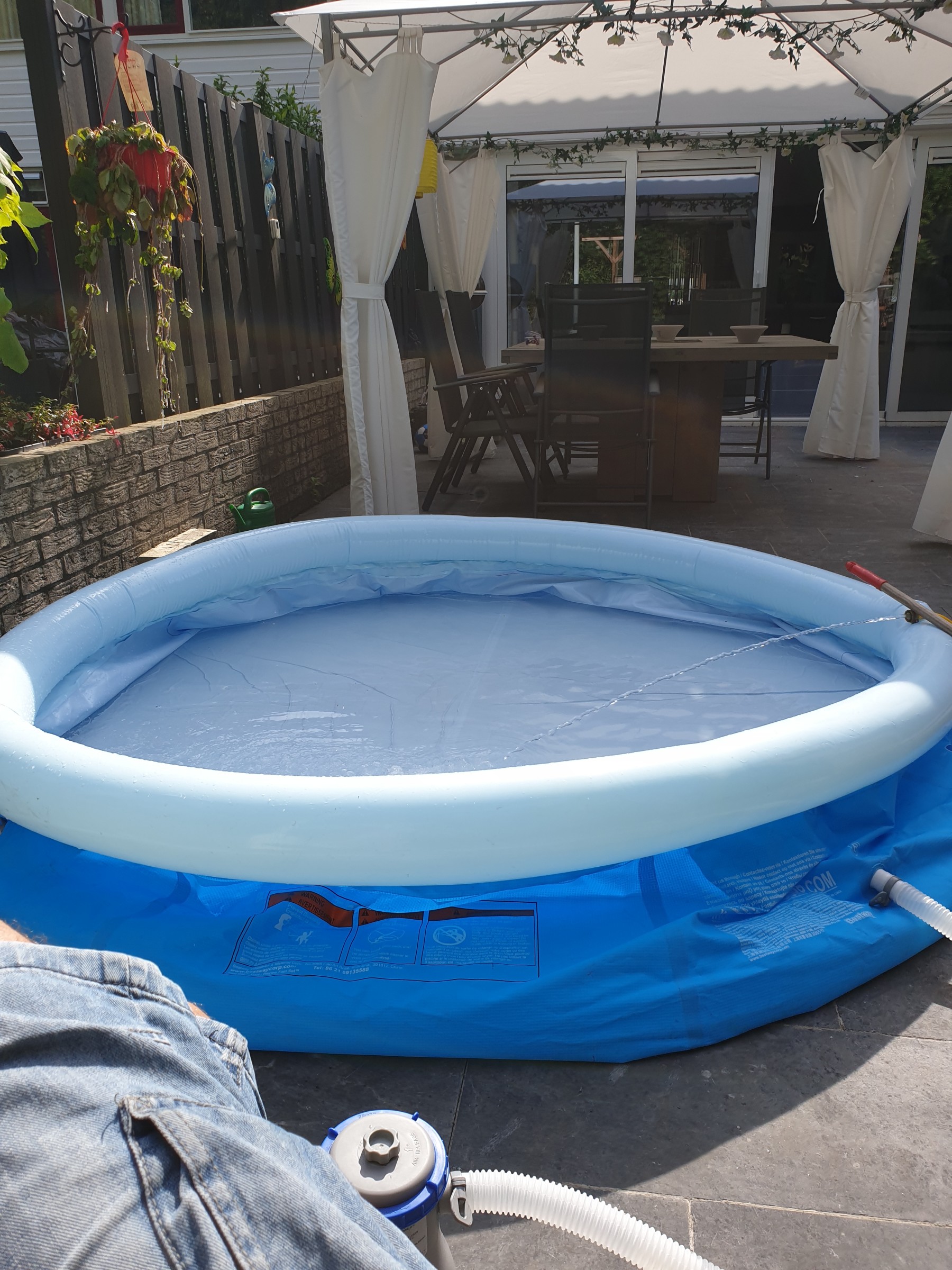 Morgen word er een nieuwe statiefventilator bezorgt voor onze jongste pikkie, verder zijn we allemaal voorzien. Zoals jullie zien zet ik het zwembad ook weer op want precies deze week begint ook de schoolvakantie. Ik moet nog 2 weken werken en dan heb ik ook eindelijk vakantie.. maar dan hebben de jongens lekker een verkoelend bad. Ik heb geen idee wat er op de bouw aan werk overblijft met die abnormale temperaturen.. we gaan het zien.