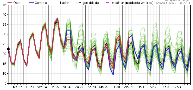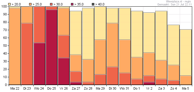 Vrijdag grote onzekerheid vanwege timing doorkomst koufront. Na het weekend weer hogere temperaturen, neigend naar tropisch warm.