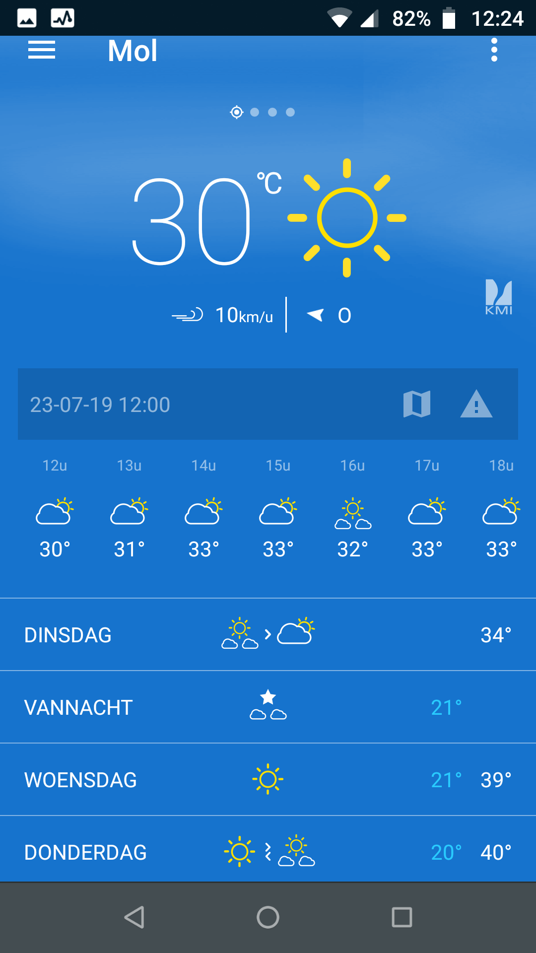 Eerste maal dat ik de 40C zie in een KMI-weerbericht. Bron: officiële app van het KMI