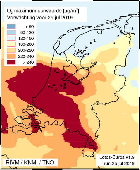 De verwachtingen voor de ozonconcentratie van vandaag: