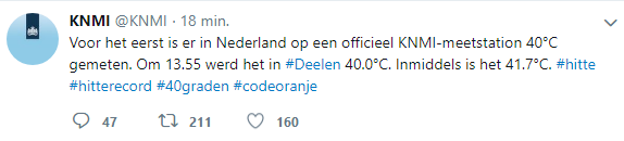 Nu kijken wat Twente (39), Maastricht (38,9) en Eindhoven (39,1) doen. Waarschijnlijk op al deze stations 40-41. Wel enorm jammer dat het KNMI in officiele communicatie op Twitter het 'record' van Deelen meldde. Als je een beetje serieus met je werk en het weer bezig bent dan zouden direct alle alarmbellen moeten gaan rinkelen.
