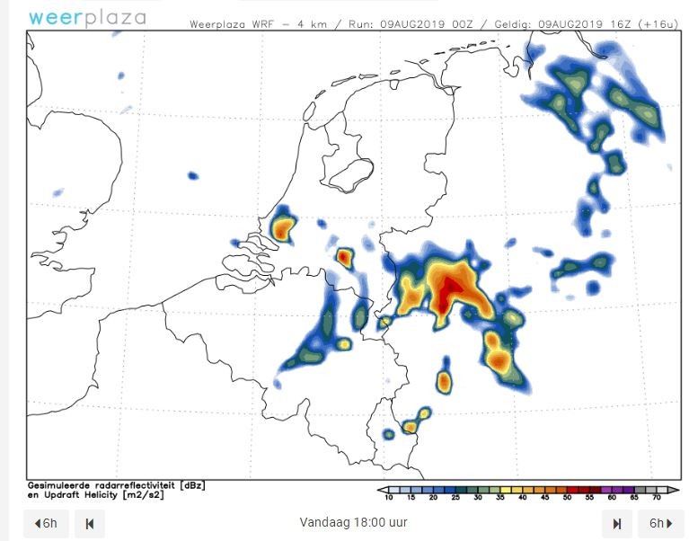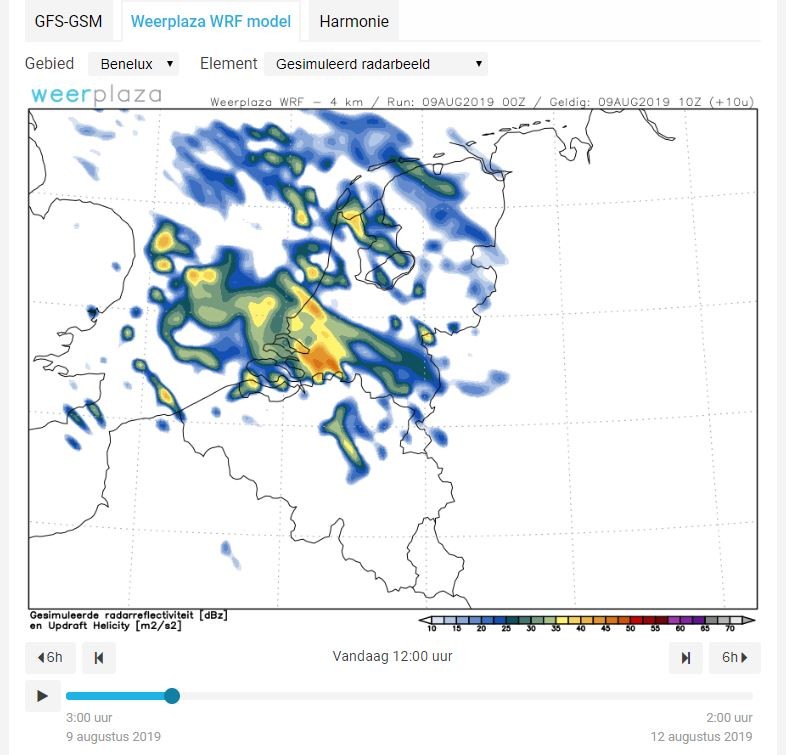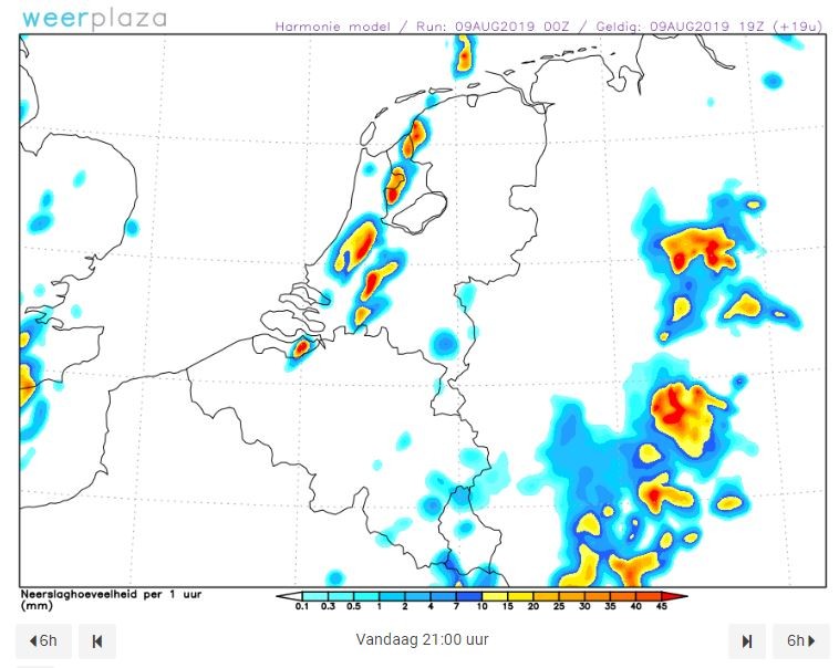 Harmonie laat rond de middag weinig gebeuren maar vanavond op het koufront wel en iets eerder krijgt Limburg ook een flink buiencluster. Ook dit model geeft zomers warm weer.