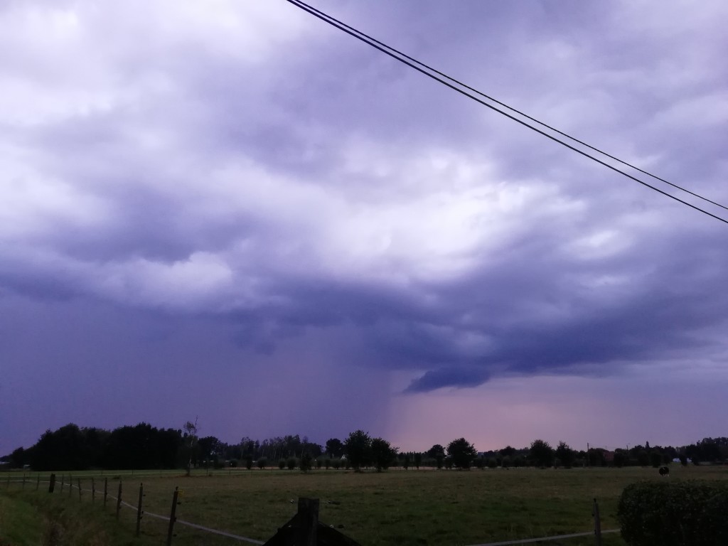 Zijkant van hetzelfde onweer. Grens Putte en st-kat-waver. Opvallend dat het vooraf windstil was. Verder zag het er dreigender uit dan het in werkelijkheid was. Smartphone'kwaliteit'