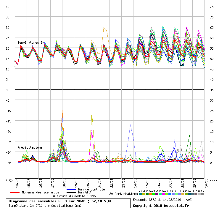GFS-ensemble opteert echter voor grote kans op warmer en droger weer richting einde volgende week. Maar dat is buiten de betrouwbare termijn.