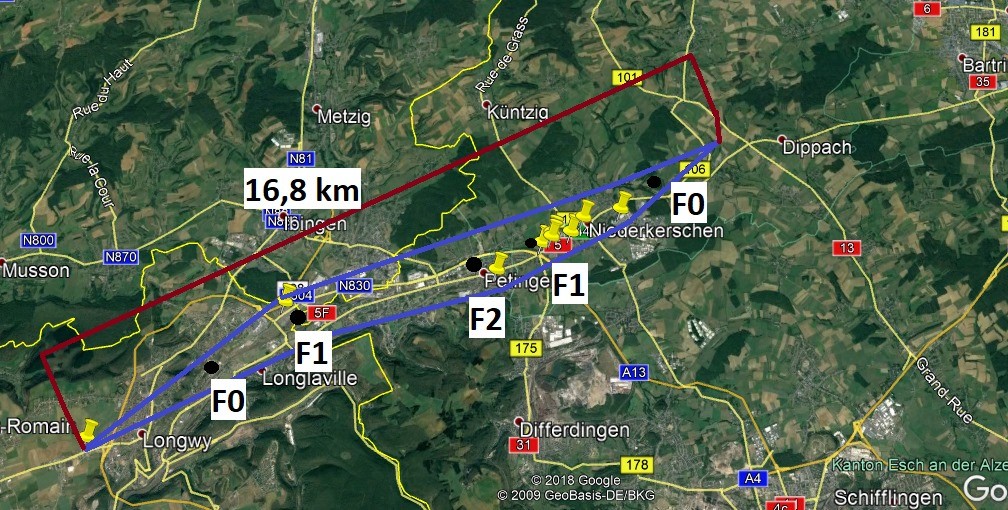 Een goed artikel, maar de baan van de tornado wordt zo iets te zuidelijk voorgesteld. Hier een betere analyse van Meteo Remich (Sven Rock). Het punt was nu juist dat de tornado precies over de hoofdstraat van Pétange trok. Wel in nogal wisselende intensiteit, allicht vanwege het multivortex-karakter ervan. De zwaar beschadigde daken zijn in groepen te vinden, met soms een paar honderd meter ertussen.
