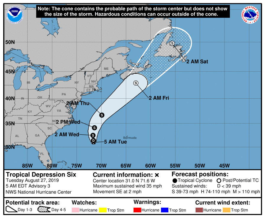 Verder ligt er ten Oosten van de VS nu een tropische depressie, die binnen enkele dagen een tropische storm zal worden met de naam Erin. Deze storm krult weg van de VS, maar zal waarschijnlijk tegen het weekend ook aan land komen in de buurt van Newfoundland of Nova Scotia. Een enkel model gaat voor een minimale cat. 1 orkaan, maar een tropische storm is het meest waarschijnlijk. Ondanks dat is een storm bij Newfoundland relatief zeldzaam (de laatste keer was Maria in 2011) en is het dus iets om op de letten, zeker voor de bijna 500 duizend mensen die in de regio wonen.